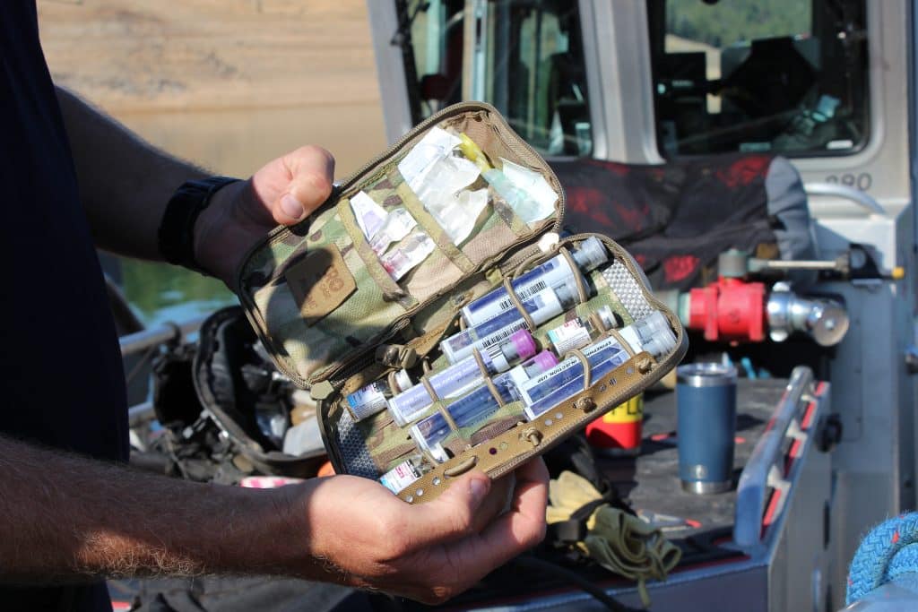 “You’re normally used to the care of an ambulance with a large cache of gear, where here, you’re working [with] very bare bones tactical medicine, so you’re having to kind of weigh out your treatments and your response time,” he said.