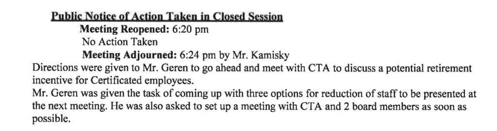 A review of minutes from a special January 27 meeting show that’s when the Board authorized Superintendent Doug Geren to propose specific staffing cuts. Since budget decisions and staffing cuts were not part of the Board’s special meeting agenda, Shasta Scout has reached out to the District to confirm that this action complied with the Brown Act and is awaiting a response.