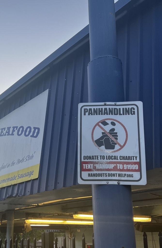 A sign posted a few blocks from the Mission in downtown Redding. Photo by Annelise Pierce.