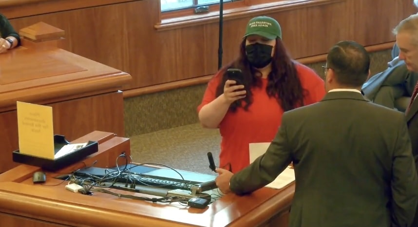 O’Connell Nowain says its ridiculous that she was arrested for exercising her First Amendment rights. She pointed out that her silent protest by sitting on the floor of the chamber wasn’t an actual disruption of the meeting because it didn’t stop public officials from continuing to conduct the public’s business.