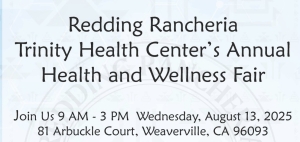 Join the Redding Rancheria Trinity Health Center’s Annual Health and Wellness Fair on Wednesday, August 13, 2025, from 9 AM – 3 PM at 81 Arbuckle Court, Weaverville, CA!