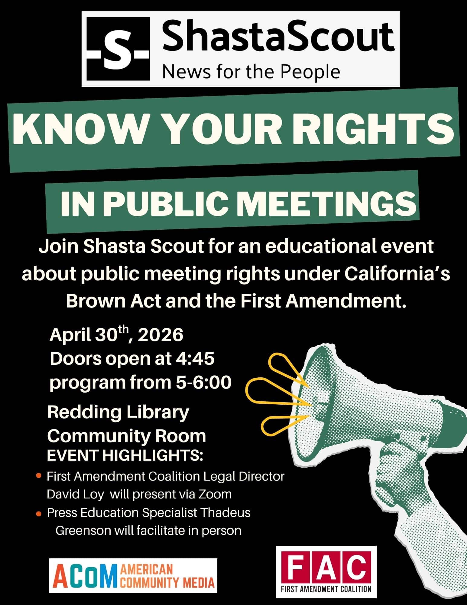 Redding Chamber of Commerce Shasta County Supervisors Candidates Forum Apr 27 5:30 pm - 7:30 pm Redding Chamber of Commerce Shasta County Supervisors Candidates Forum