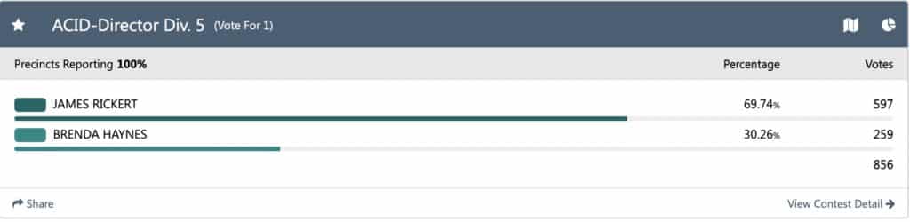 Rickert launched a campaign to take A.C.I.D. President Brenda Haynes’ seat on the board several months ago. Preliminary voting results show he is likely to replace her.