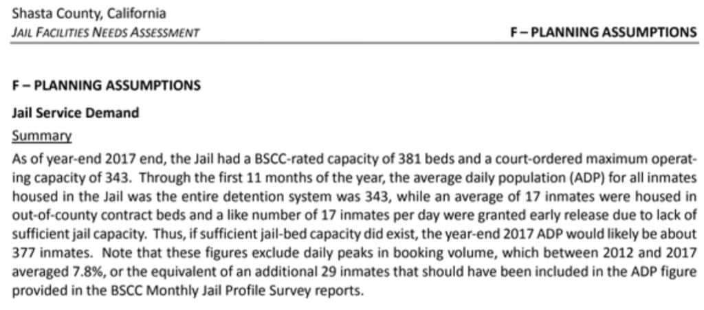 A section of the 2017/2018 Grand Jury Report on Shasta County Jail Capacity. Find the full report here.