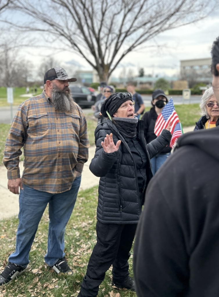 The small group of counter-protesters included Chair of Shasta Moms for Liberty Leslie Sawyer as well as Cottonwood Militia member Jesse Lane, among others. Protesters and counter-protesters occasionally engaged in heated verbal altercations, but there were no acts of violence.