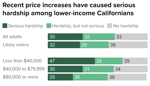 A March 2022 Public Policy Institute of California (PPIC) survey that included Shasta County residents, indicates that recent price increases, including the price of gas, have significantly impacted lower-income Californians.