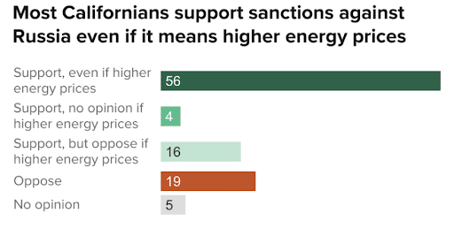The PPIC notes that while only 4 percent of U.S. oil imports come from Russia, oil prices are determined on a global scale and Russia supplies roughly 11 percent of global oil. Additional contributing factors to the current price of gas in the U.S. include the COVID-19 pandemic, sanctions on Iran, and changes in Mexican and Venezuelan gas industry policies, as well as conflict in Africa and the Middle East.