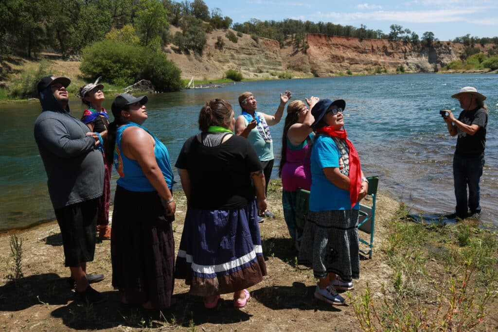 This year when we returned to the confluence of Cow Creek and the Sacramento River, two eagles flew low and slowly circled wide above our heads. All of us looked up and started singing that Eagle Song. Eagles like Winnemem, are Salmon beings. We are one on this prayer journey together.