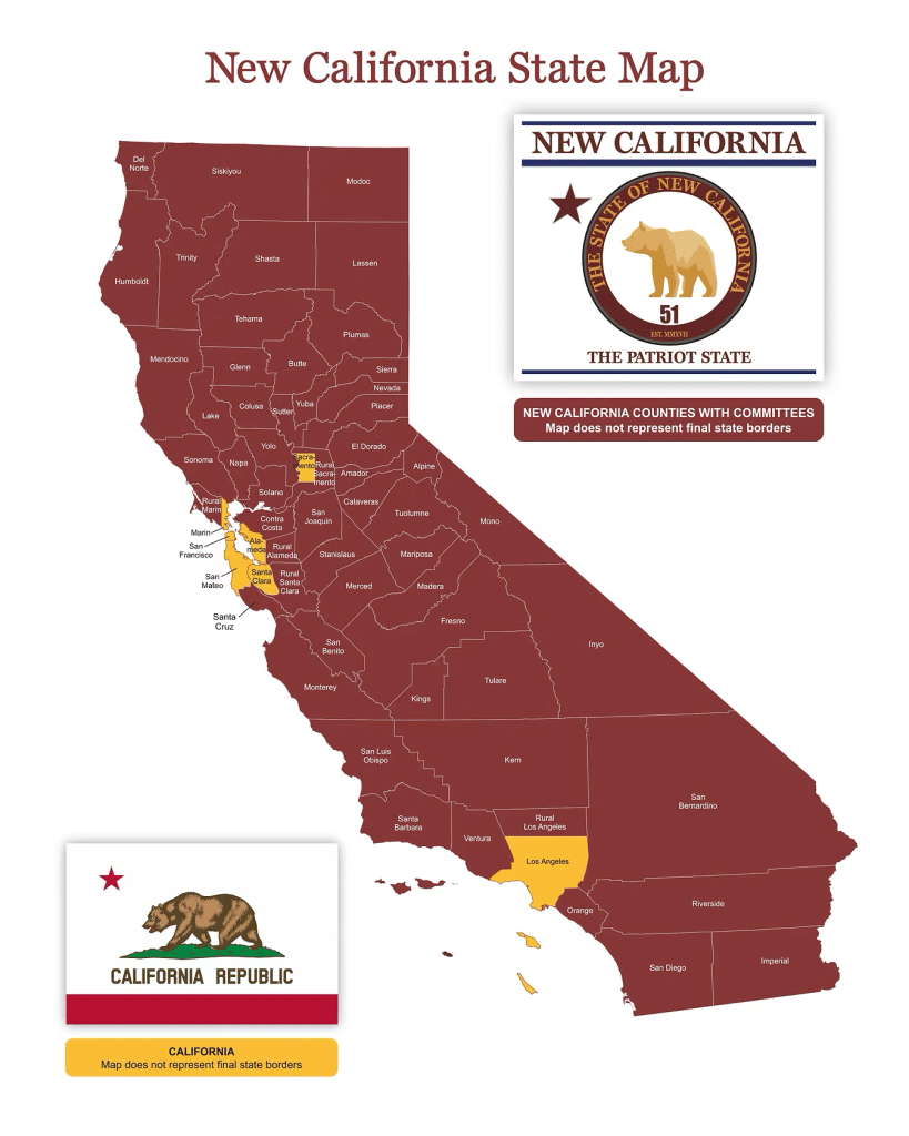 New California State is a political movement whose leaders say they have support from the federal administration to propose the creation of a new state. Federal officials haven’t commented.