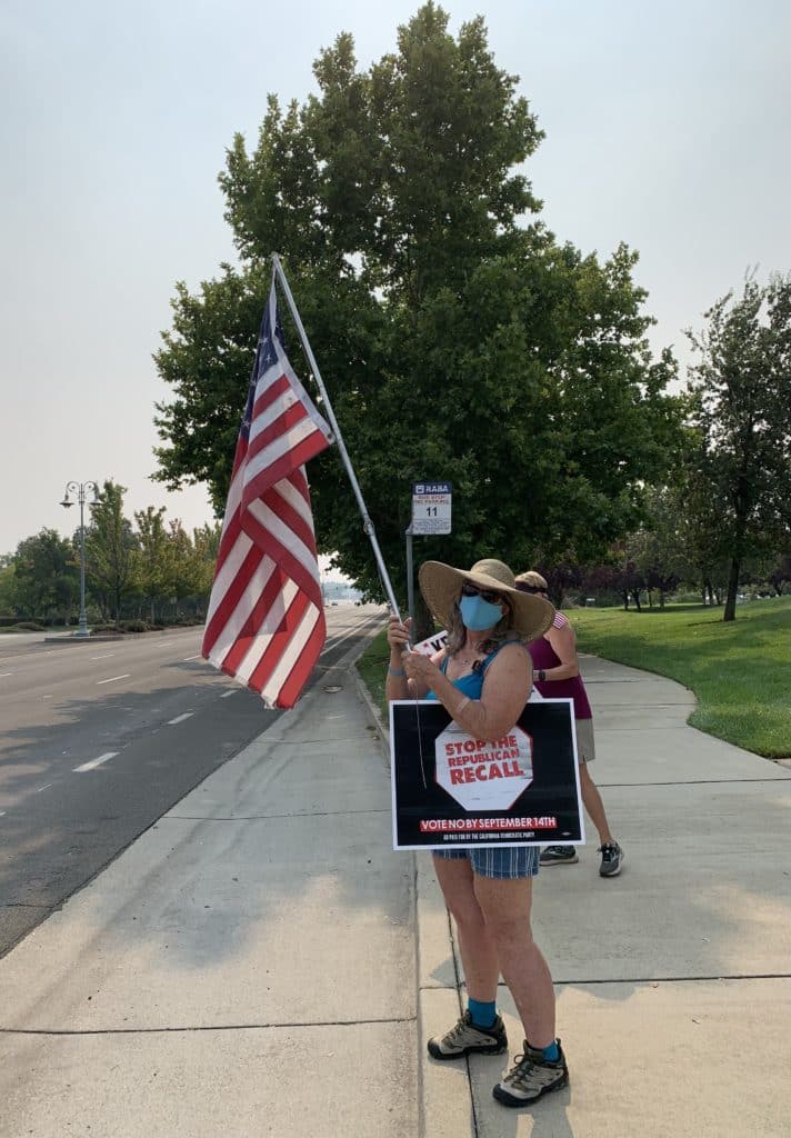 Laura Erskine-Farley who attended Saturday’s event said Shasta County’s political climate have made her and others afraid to speak up on behalf of Newsom. But, the former teacher said, her fears about what could happen to California if Newsom is recalled worry her more. She is particularly concerned about candidates who might eliminate California’s COVID restrictions.