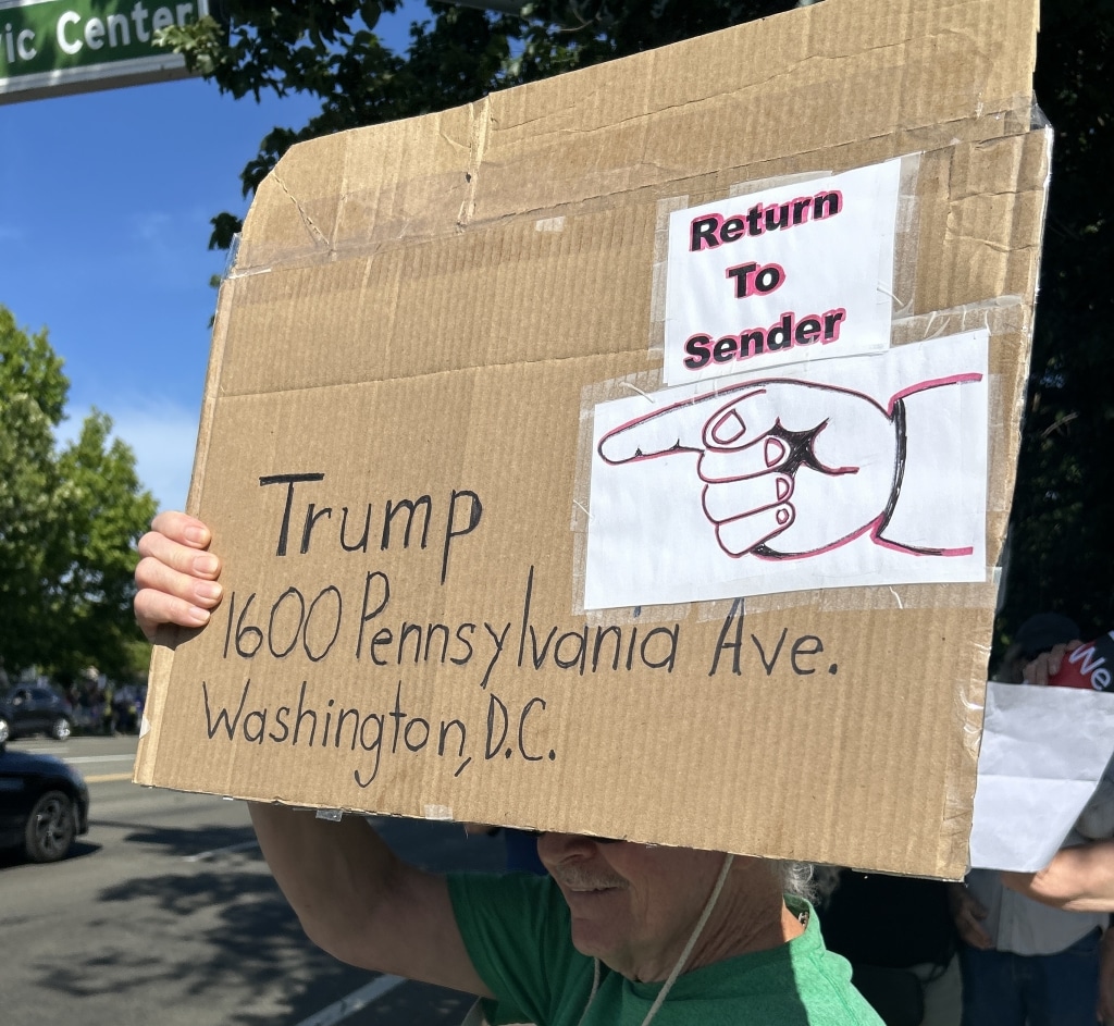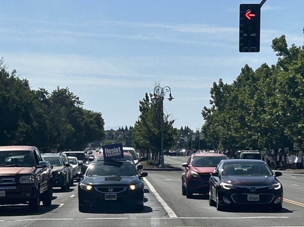 At least 1,600 people attended the event which was held in front of the Redding City Hall. Many carried signs expressing their disapproval for President Donald Trump’s policies including immigration raids that have sparked protests across American cities over the last week. Opposition to Trump included concerns about his policies on the environment, veteran services, healthcare services, education, tariffs, refugees and much more.