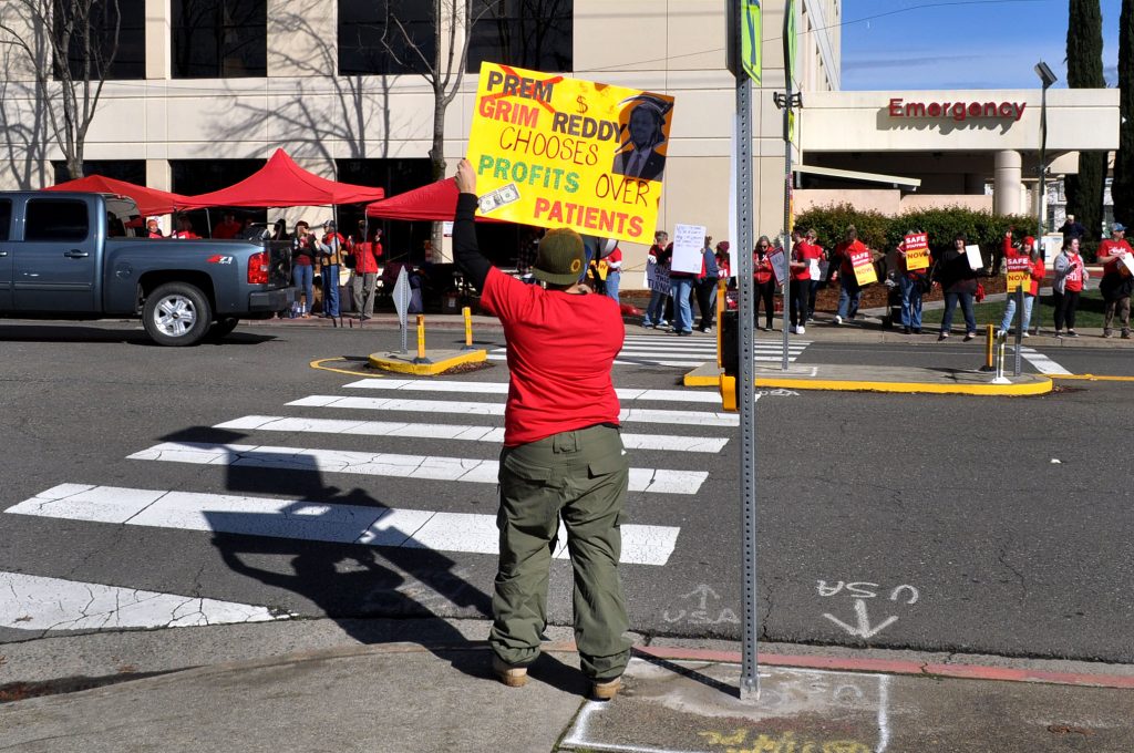 โShame on you Shasta Regional; shame on you Prem Reddy!โ rang out from a megaphone as striking nursing staff gathered in front of Shasta Regional Medical Center today. The subject of their chants included the CEO of Prime Healthcare, the company that owns Shasta Regional Medical Center where they work along with 53 other hospitals.