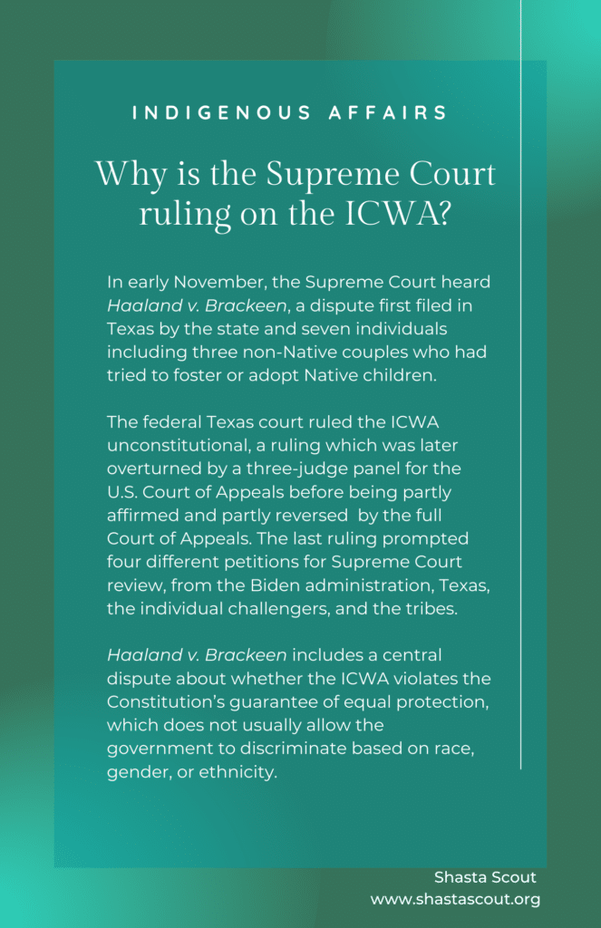 ICWA was passed in 1978 to address the centuries-old practice of separating Native children from their families. It’s a vital and relevant law that has had a profound effect on my life and the lives of many other Native children — but its future is uncertain. Last week, the Supreme Court heard arguments on Haaland v. Brackeen, the case that could dismantle ICWA. What the Court decides will impact generations of Native families.