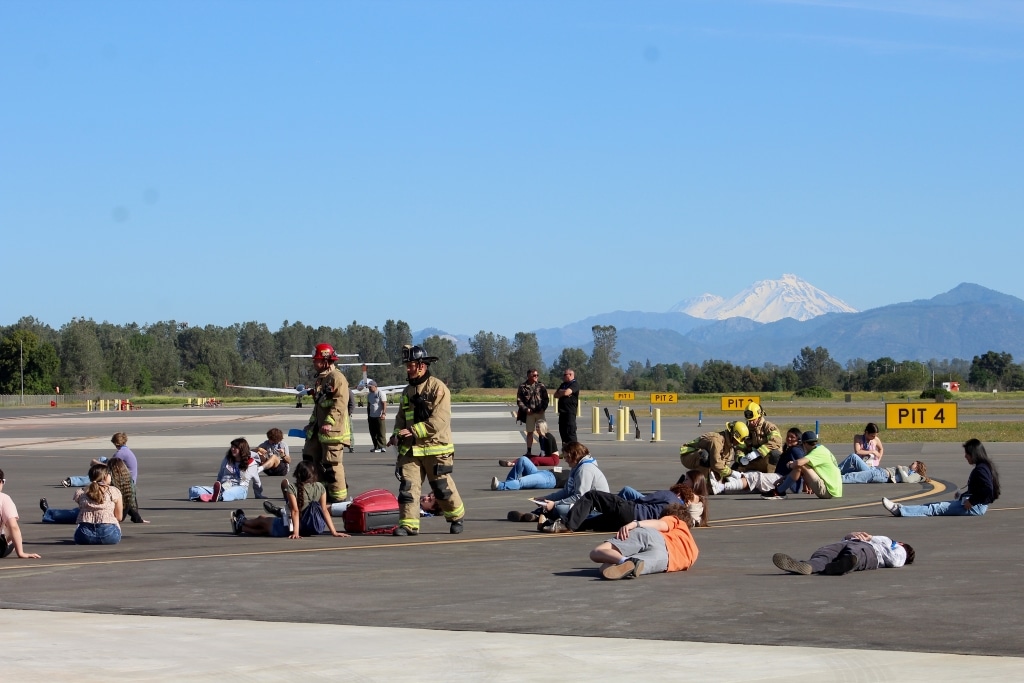 Agencies involved in the event included the Redding Police and Fire Departments, Cal Fire, airport staff and local ambulance companies and hospitals. Students who participated are part of a high school program that gives them the chance to familiarize themselves with fire department operations, Smith said, adding that the program is an “investment in the future of the industry.”