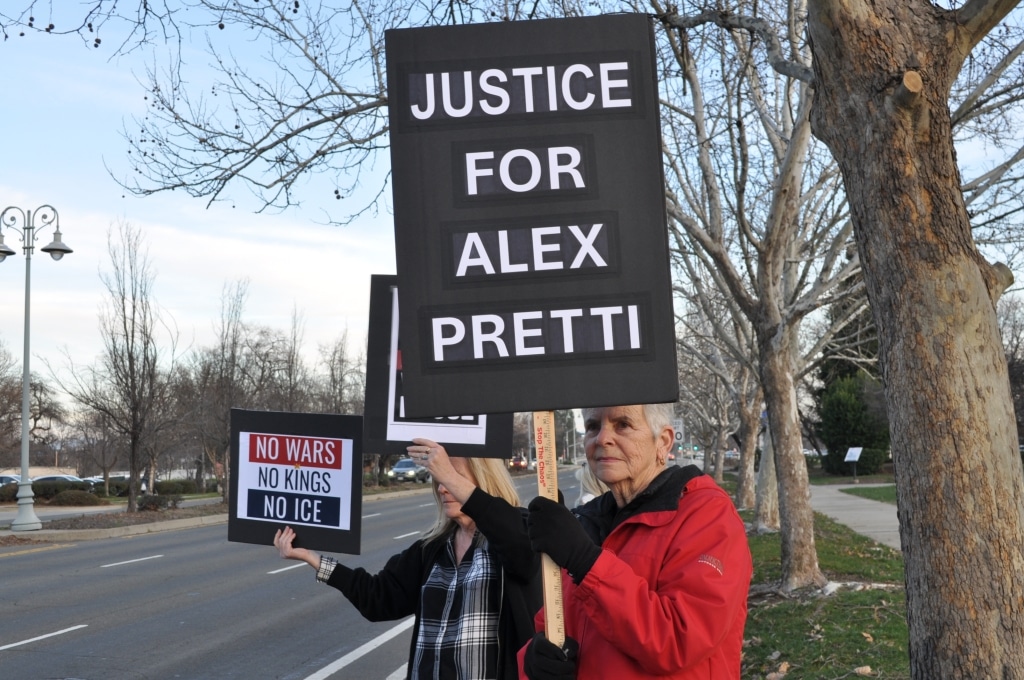 The event was organized by the group Redding Resistance in response to the shooting of Alex Pretti by a federal immigration official on the streets of Minneapolis over the weekend. Pretti, an American citizen, was an intensive care nurse who worked with veterans. Early statements by Trump administration officials attempting to legitimize his shooting do not match bystander videos of the event.
