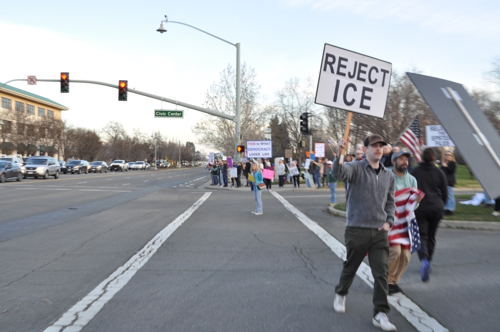 The protest was organized by a group called Redding Resistance. Hundreds showed up to hold signs, listen to speeches and sing as they called for an end to ICE action in Minnesota and across the United States. Speakers included conservative candidate for Shasta supervisor, Tim Garman.