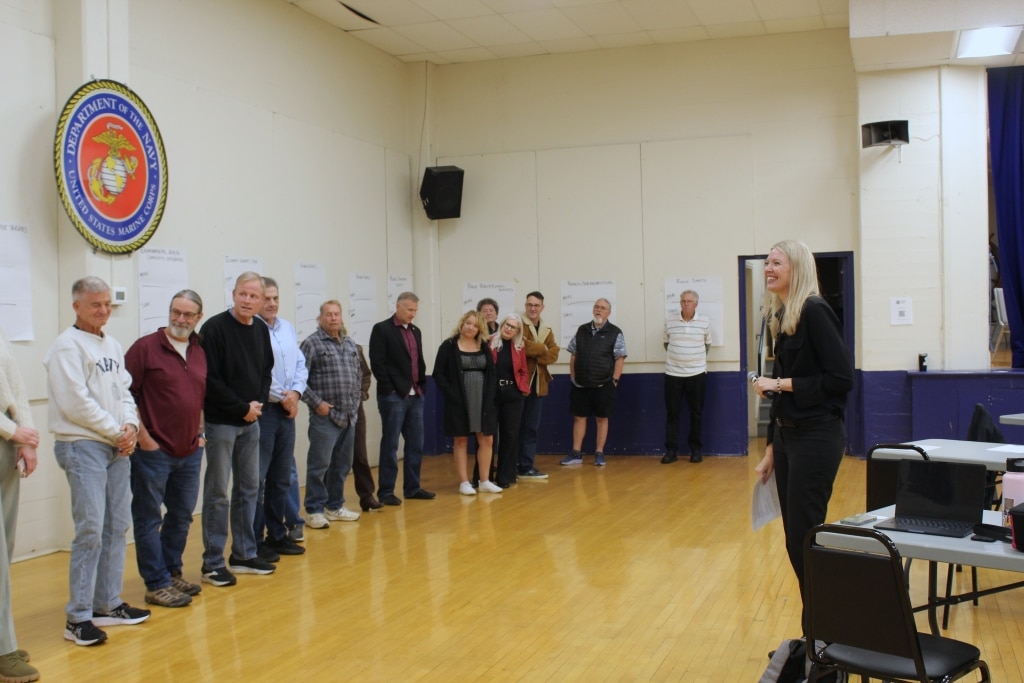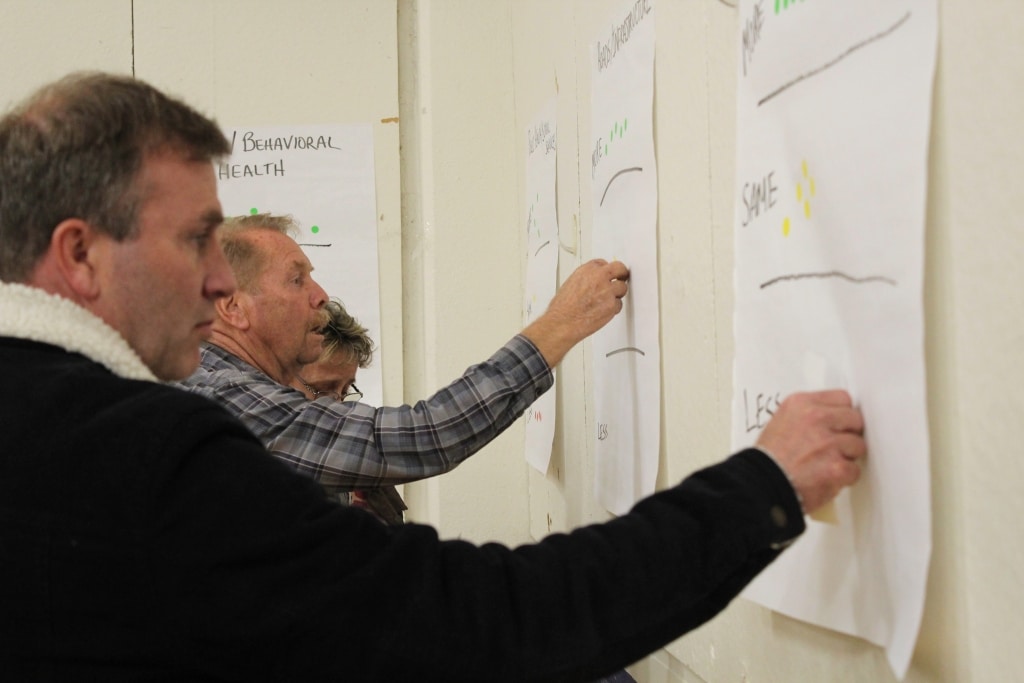 The meeting had several activities, including asking individuals to line up in order of how long each person has been in Shasta County, putting stickers on topics that residents want the county to prioritize spending on and writing on posters ideas for how the areas included under those topics could be improved in the county. Residents brought up suggestions related to public safety, mental health, homelessness, roads and infrastructure, economic development and more.