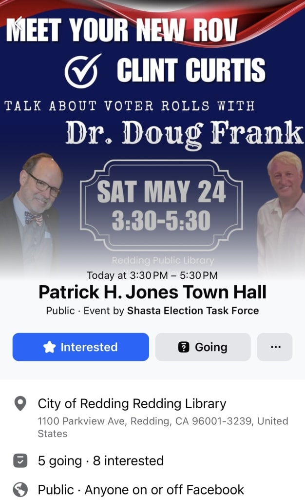Curtis’ opening remarks at the town hall meeting indicated that he believes there was significant misconduct on the part of previous Shasta County Election officials. His statements included concerns about how ballot duplication and signature verification occurred during the last election.