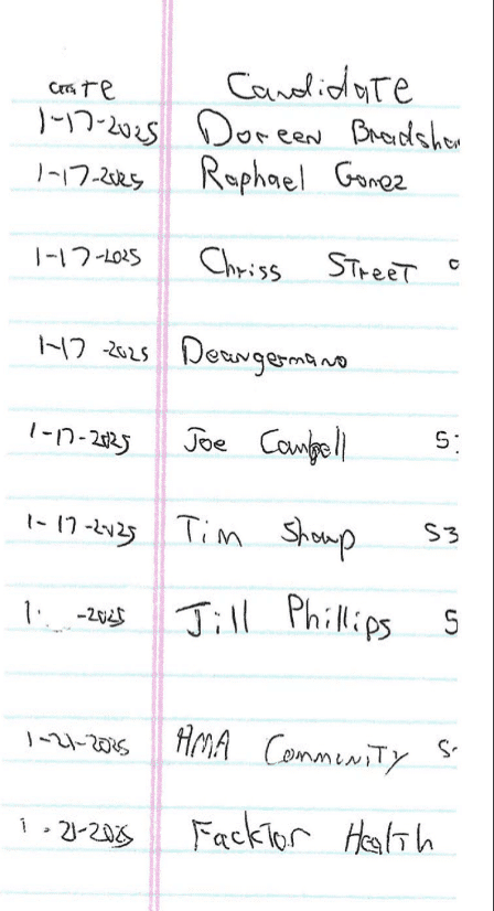 Other invited applicants included Tim Sharp, a Regional Director with Partnership Health Plan; Jill Phillips, the founder of the Shasta Substance Use Coalition; and Rafael Gomez, a Senior Healthcare Consultant with El Cambio Consulting. Two organizations, Healthcare Management Associates and Facktor Healthcare Consulting, rounded out the list.