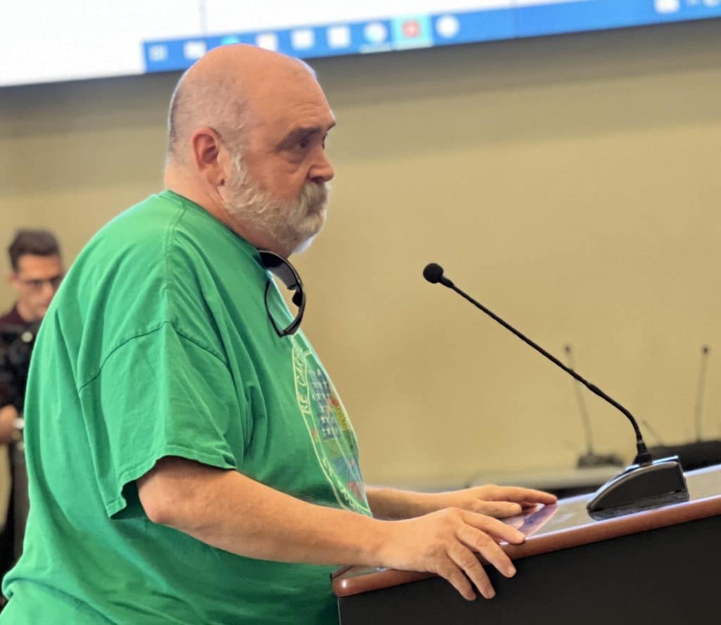 Community member Clayton Seabourn speaks to the SCOE Board on August 9, 2023. Photo by Annelise Pierce.