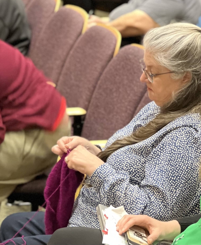 When she showed up at the following meeting she proceeded to sit there and knit, on taxpayer dollars. I/we are not paying her to knit during board meetings.