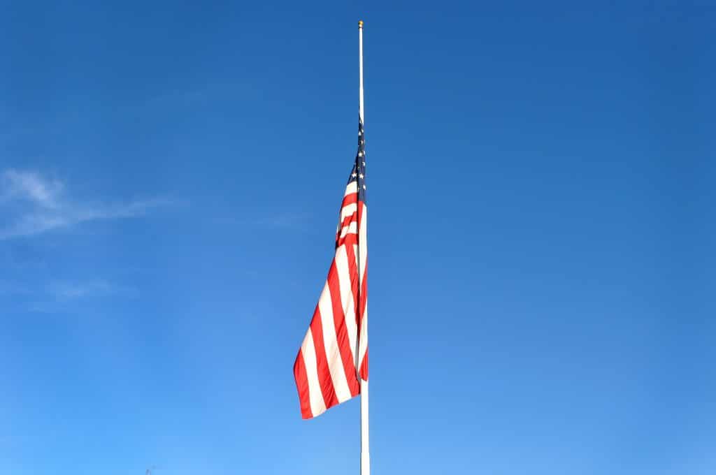A flag flies at half mast on Bechelli Lane in Redding, California. Photo by Nevin Kallepalli