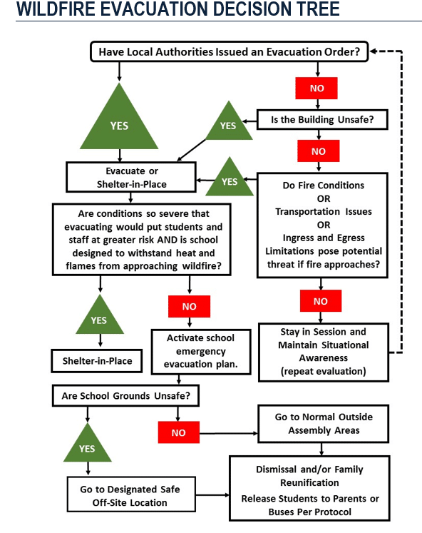 Beyond buildings, Estrella stressed that school grounds should be clear of vegetation or any highly flammable materials. Trimming trees and maintaining landscaping are critical to making sure foliage stays green and less susceptible to fire damage, she said.