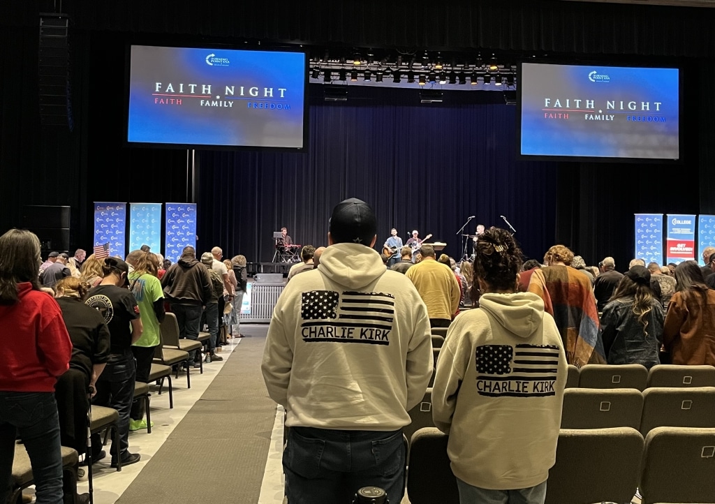 While community conversation leading up to the “Faith Night” was highly politicized, speakers at the event mostly shared personal stories about God, with little political content outside of a video screening and posters displayed by Turning Point USA.