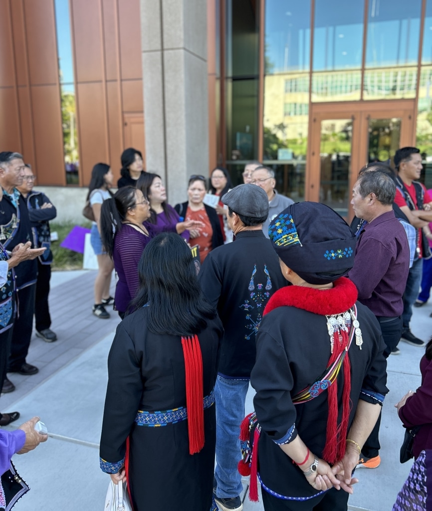 More than three hundred community members rallied at the Shasta County Courthouse on Friday, as McCain showed up in court. Many wore traditional Mien clothing and translation for rally cries spoken in English were spontaneously repeated in Mien for those with less English fluency.