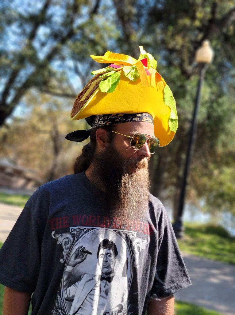 The person nominating you said that your story is about a big bearded man with a taco hat who organizes to feed people who don’t have homes in our community. How do you describe what you do?