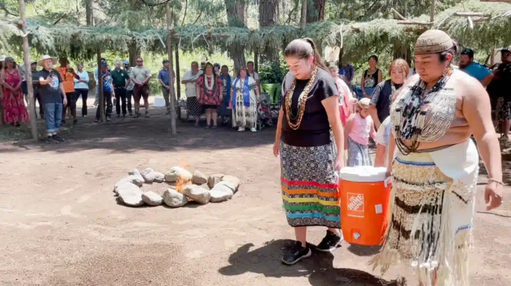 The July 11 gathering was also the first Winnemem Wintu ceremony at their village, Way El Xopormos (now a U.S. Forest Service campground), in more than a century. One hundred years ago, the village became the private property of railroad companies, and, later, wealthy San Francisco elites, causing the Winnemem Wintu people to become disconnected from the land.
