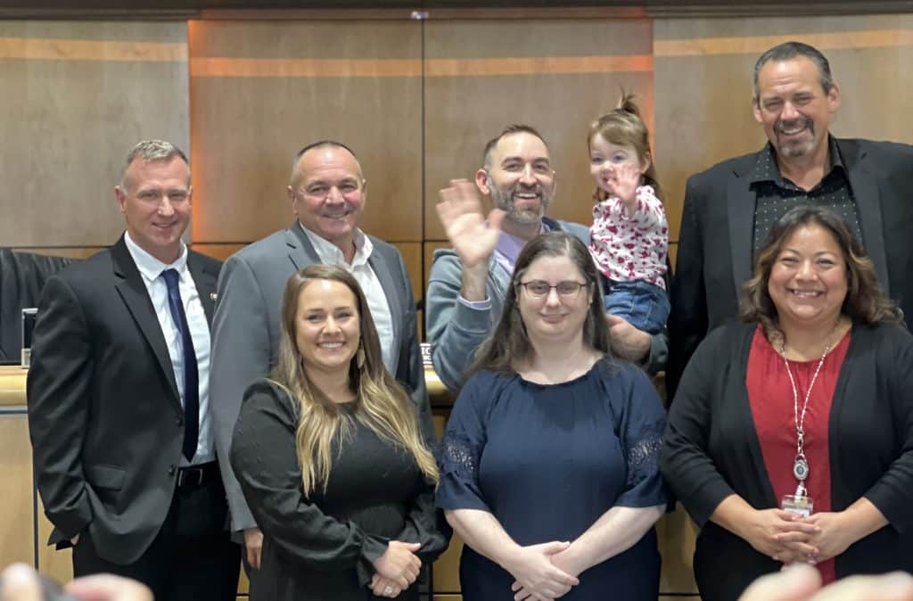 Stephany Blankenship poses with members of the Board of Supervisors and her staff, Kristin Gulling-Smith, John Sitka, and Valerie Ibarra.