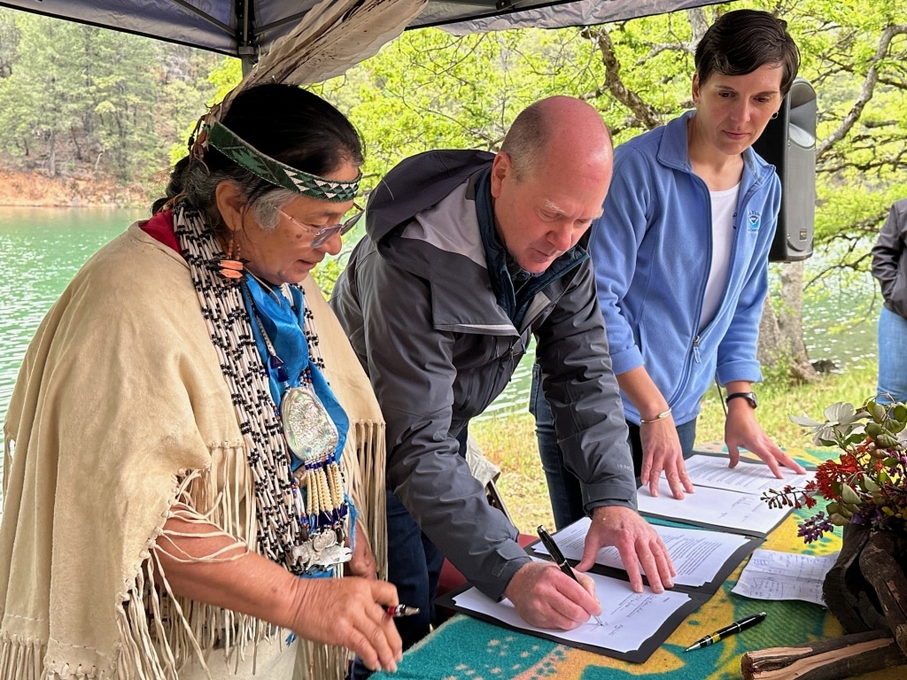 Hereditary Chief Caleen Sisk said her Tribe, the Winnemem Wintu, is the only one qualified to advocate for their ancestral homelands of the McCloud River watershed, where they have been working with government agencies to protect sacred sites, revitalize ceremonies and restore the river’s ecology for decades. For example, the Tribe has spent more than 20 years resisting the Bureau of Reclamation’s raise of Shasta Dam and since 2022 have been working with state and federal agencies to restore salmon to the McCloud.